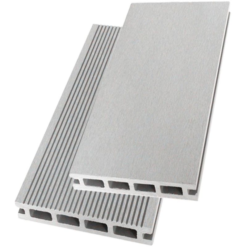 Green Outside – Lame de terrasse composite 2.60m – Couleur gris clair – Réversible avec face lisse et rainurée – 60% bois recyclé – Résistante aux UV