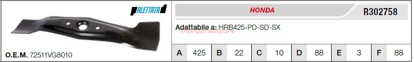Lame HONDA Tondeuse HRB425-PD-SD-SX R302758