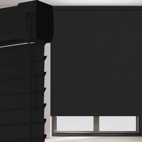 Stores Vénitiens Occultants, Stores Horizontaux Intérieurs Volets À Lamelles De 25mm, Rideaux D'intimité Horizontaux pour Chambre, Salle De Bain Et Salon(Black)