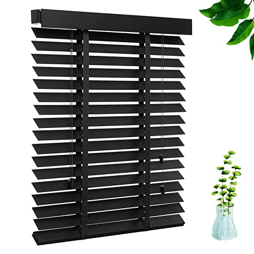 Jolan Stores Horizontaux,Stores Vénitiens Fenêtres Bois,Volets À Lamelles 50mm,Store Vénitien en Bois Massif Noir 50cm 60cm 70cm 80cm 90cm 110cm 115cm 120cm,Rideaux Occultants,W×H-110x120cm/43x47in