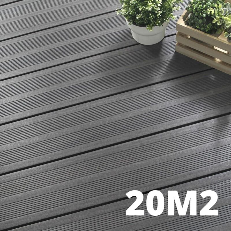 Kit Terrasse Composite ATLANTA 20m² - 61 Lames de Terrasse (220 x 14.5 x 2.25 cm) - Platinium - Garantie 15 ans - Fixation par Clips