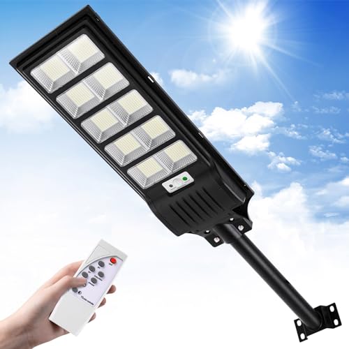Adewalk 6000W lampadaire solaire avec télécommande, Lampe solaire extérieure étanche ip66 avec capteur de mouvement, 6500k lumière solaire super lumineux spot Solaire LED jardin extérieur garage rue
