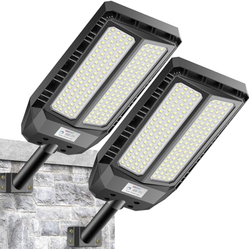 1200W LED Réverbères Lampadaire Solaire Exterieur avec Télécommande, 6500K 792 LEDs Reverbere Solaire Exterieur Détecteur de Mouvement IP67 Etanche LED Réverbères pour Parking Patio Rue - 2 PACK