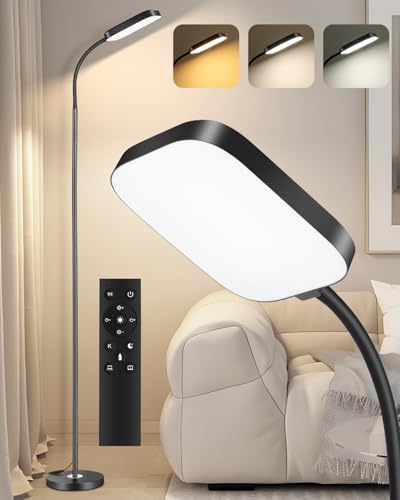 iFalarila Lampadaire avec Télécommande, 120 LED 10W, 3 Couleurs et 10 Luminosités, Lampadaire Flexible à Col de Cygne pour Salon/Chambre/Bureau
