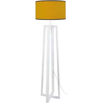 Lampadaires Tosel Lampadaire colonne bois blanc et jaune