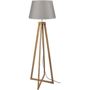 Lampadaires Tosel Lampadaire colonne bois foncé et gris