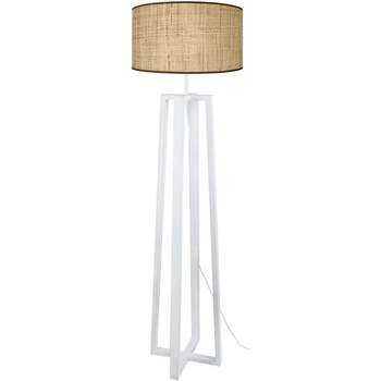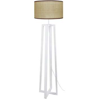 Lampadaires Tosel Lampadaire colonne bois blanc et paille