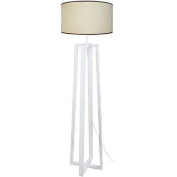 Lampadaires Tosel Lampadaire colonne bois blanc et écru