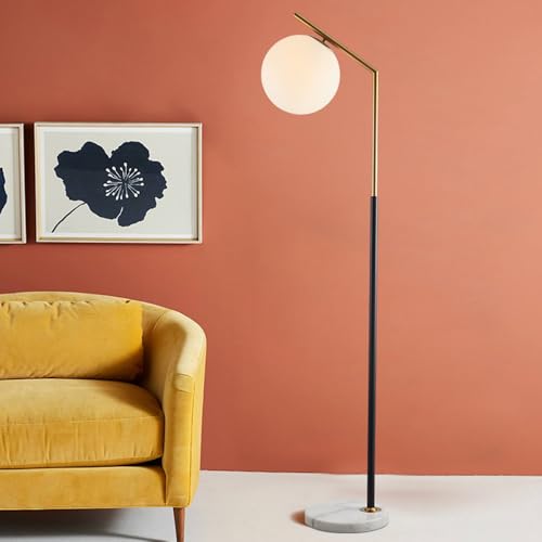 Lampadaire globe en verre du milieu du siècle, 65 pouces, base en marbre, lampe haute avec E26, lampe sur pied en verre dépoli à intensité variable, pour salon, canapé, bureau, chambre à coucher