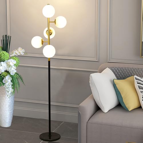 KlkrzJwy Lampadaire Mid Century 5 Lumières 66,9" Globe En Verre Lampadaire Lampe Haute En Verre Dépoli Avec Base En Marbre E26 Dimmable Lampe Sur Pied Pour Salon Bureau Chambre Canapé Coin