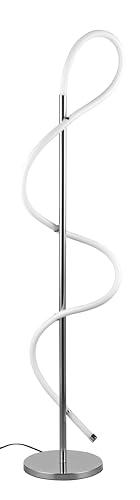 Reality Leuchten Lampadaire LED Argos R42361106, métal chrome plastique blanc, avec LED 28 watts, variateur d’interrupteur