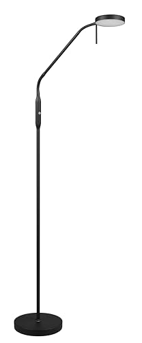 Reality Leuchten Lampadaire LED SPOCK R42292132, Métal Noir Mat, Blanc Verre, Projecteur 19 Watt LED, Bras de lecture 5 Watt LED, Variateur