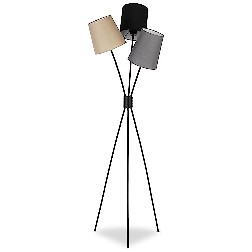 REV Lampadaire à 3 lumières au look vintage avec interrupteur à pied – Lampadaire de salon avec 3 abat-jours en tissu et douille E27 – 160 cm