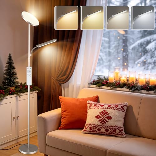42W LED Lampadaire Dimmable, 4000LM Super Lumineux Lampadaire sur Pied Salon avec Liseuse Lampe, 2700K-6500K Intensité Variable en Continu, Télécommande et Contrôle Tactile pour Chambre et Bureau