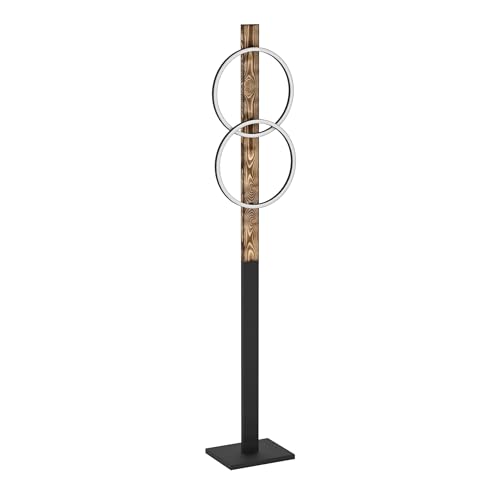 Eglo Lampadaire LED Boyal, luminaire intérieur à pied avec 2 cercles lumineux, lampe de salon rustique en bois flambé et métal noir, éclairage blanc chaud, 150 cm