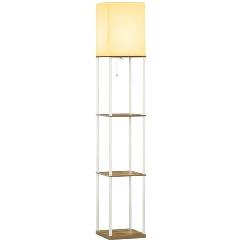 HOMCOM Lampadaire en bois design moderne, lampadaire salon avec 3 étagères, lampe sur pieds avec douille E27 (ampoule non inclus), lumière décoration pour chambre salon bureau café hôtel, blanc