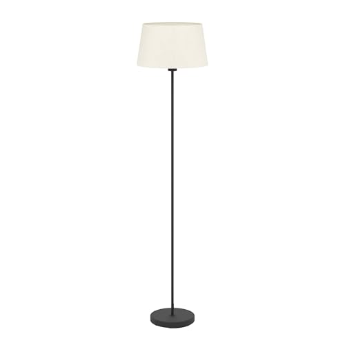 Eglo Lampadaire Febres, luminaire sur pied avec abat-jour textile, lampe de salon en métal noir et tissu bouclette blanc, avec interrupteur à pied, douille E27