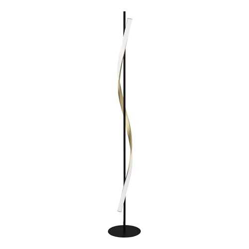 Eglo LED Lampadaire Tocina, lampe sur pied avec éclairage indirect, luminaire élégante pour salon en métal noir et laiton brossé, lumière blanc chaud, hauteur 150 cm