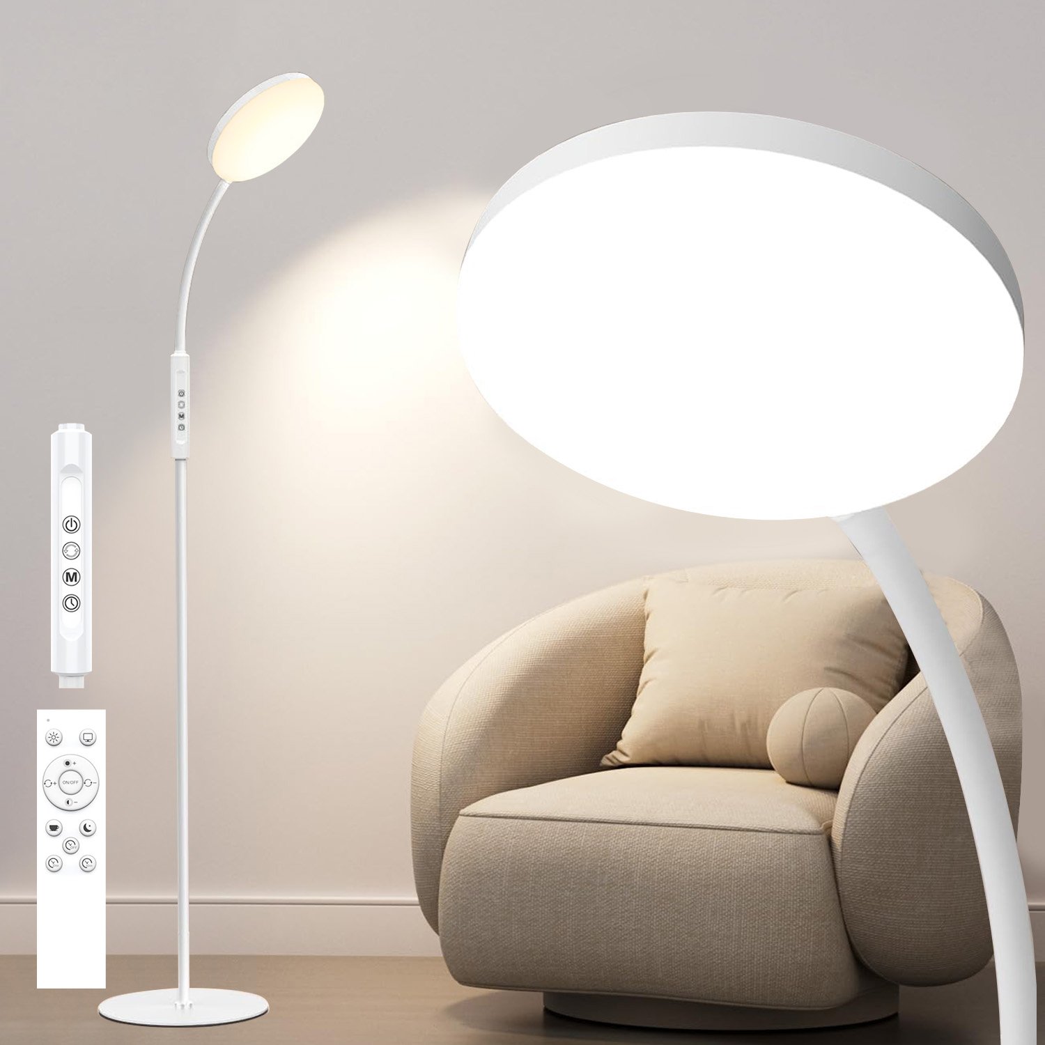 Lampadaire Salon Blanc LED Liseuse à intensité variable -20000 Lux Luminothérapie,5 couleurs de lumière,10 niveaux de luminosité, Lampadaire pour chambre d'enfant Bureau Coin