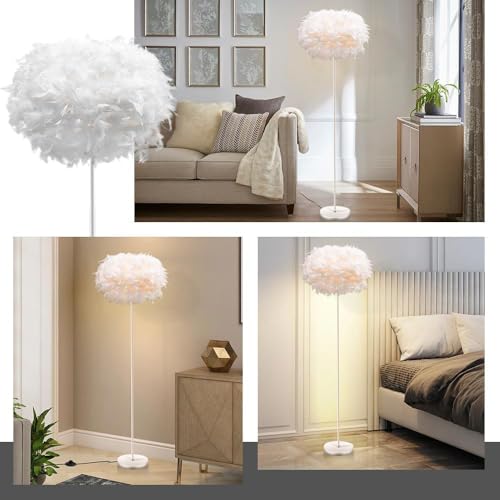 XINYASEE LED Lampadaire sur Pied Salon/Chambre Moderne Lampes de chambre, Ampoule E27 Lampe avec Angle Réglable Abat-jour en plume & Interrupteur au Pied (Blanc)