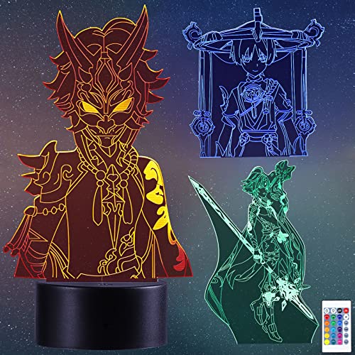 QQAAMZ Genshin Impact Lampe 3d Illusion Led Tactil Maison Enfant De Decoration Chambre Genshin Impact Xiao Veilleuse Cadeau Lampe De Table Gadgets Cadeau Noel 3 En 1