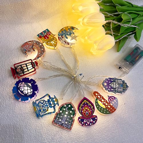 Guirlande Lumineuse Ramadan 20 LED 3.0m, Ramadan Decoration Etoile et Lune, Ramadan Kareem Decoration, Décoration Ramadan Mubarak, Décorations Lumière Eid Lampe 3D Métal Étoile Lanterne Décor Fête
