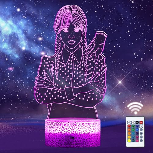 QQAAMZ Mercredi Addams Lampe 3d Illusion Led Tactil Maison Enfant De Decoration Chambre Mercredi Addams Veilleuse Cadeau Lampe De Table Gadgets Cadeau Noel