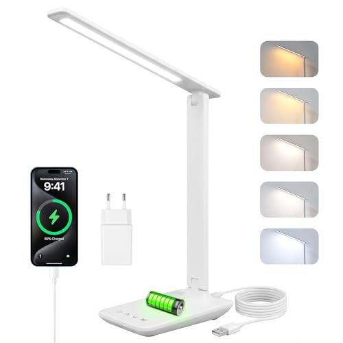 Carehabi Lampe de bureau LED, lampe bureau à intensité, lampe LED rechargeable avec 5 couleurs et 5 niveaux de luminosité, lampe de lecture avec port de chargement, commande tactile pour enfants
