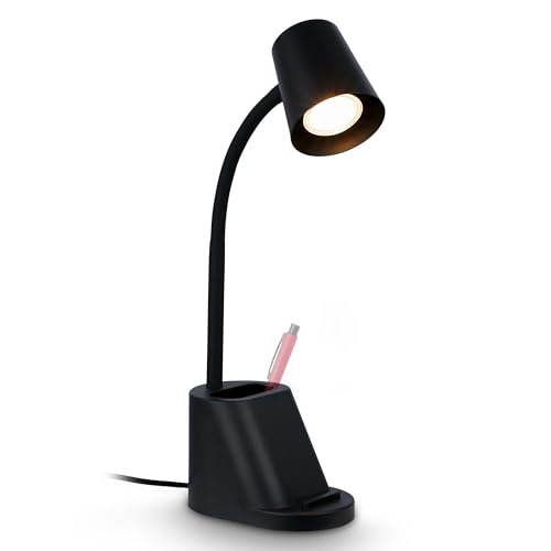 Briloner - Lampe de bureau avec porte-stylo, interrupteur à fil, orientable, lampe de table, lampe, lampe de chevet, lampe de bureau à domicile, lampe de bureau, 21x10x35,5 cm (LxlxH), noir