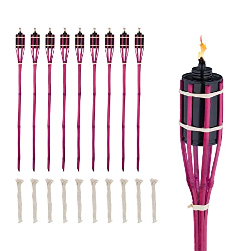 Relaxdays Torche Jardin, Lot de 10, Bambou, Lampe à Huile pour Dehors, avec mèches de Rechange, Hauteur : 90 cm, Rose