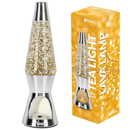 Fisura – Lampe à lave avec bougie. Lampe à lave pailletée avec base chromée. Décoration écologique. Cadeau original. Dimensions : 29 cm x 8,5 cm (bougie non incluse).