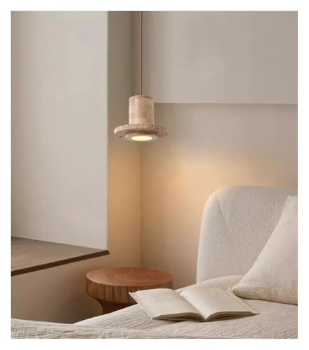 HJCKJSMEOU Lustre, Suspension en travertin, Lampe LED en Pierre Naturelle Style OVNI, Lustre Vintage réglable pour Chambre, Salle à Manger, Bar (D20cm, lumière Chaude)