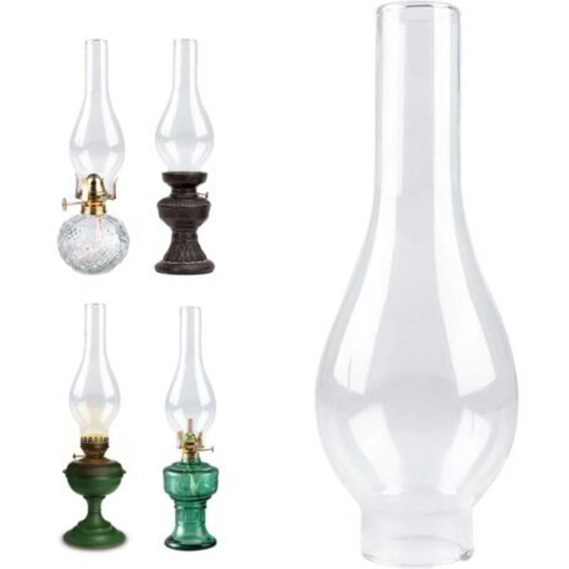 Abat-Jour en Verre pour Lampe à Pétrole, Cheminée de Lampe à Huile, Verre de Rechange pour Lampe à Pétrole Vintage, Base de 5 cm, Hauteur de 24 cm