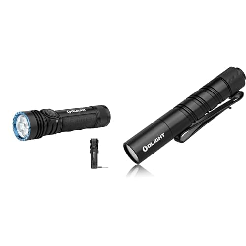OLIGHT Ensemble de Lampe de Poche Seeker 4 Pro LED Rechargeable 4600 LM 260 M Ultra Puissante Militaire 5 Mode Bundle I3T 2 EOS Mini Lampe Torche EDC à LED 300 LM 80M Pile AAA avec Interrupteur arriè