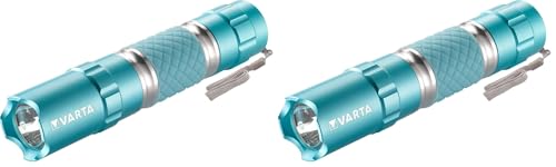 VARTA Lampe Torche LED incl. 1x pile AA, Lipstick Light, lumière, lampe de poche avec dragonne, boîtier en aluminium et poignée en caoutchouc, facile à trouver - brille dans le noir, turquoise