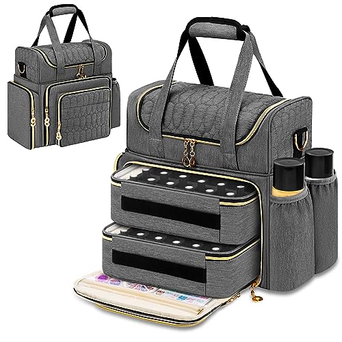 Betoores Sac de Rangement Vernis à Ongle, Sac Organisateur pour 70 Flacons de Vernis à Ongles et Lampe à Ongles UV, Gris