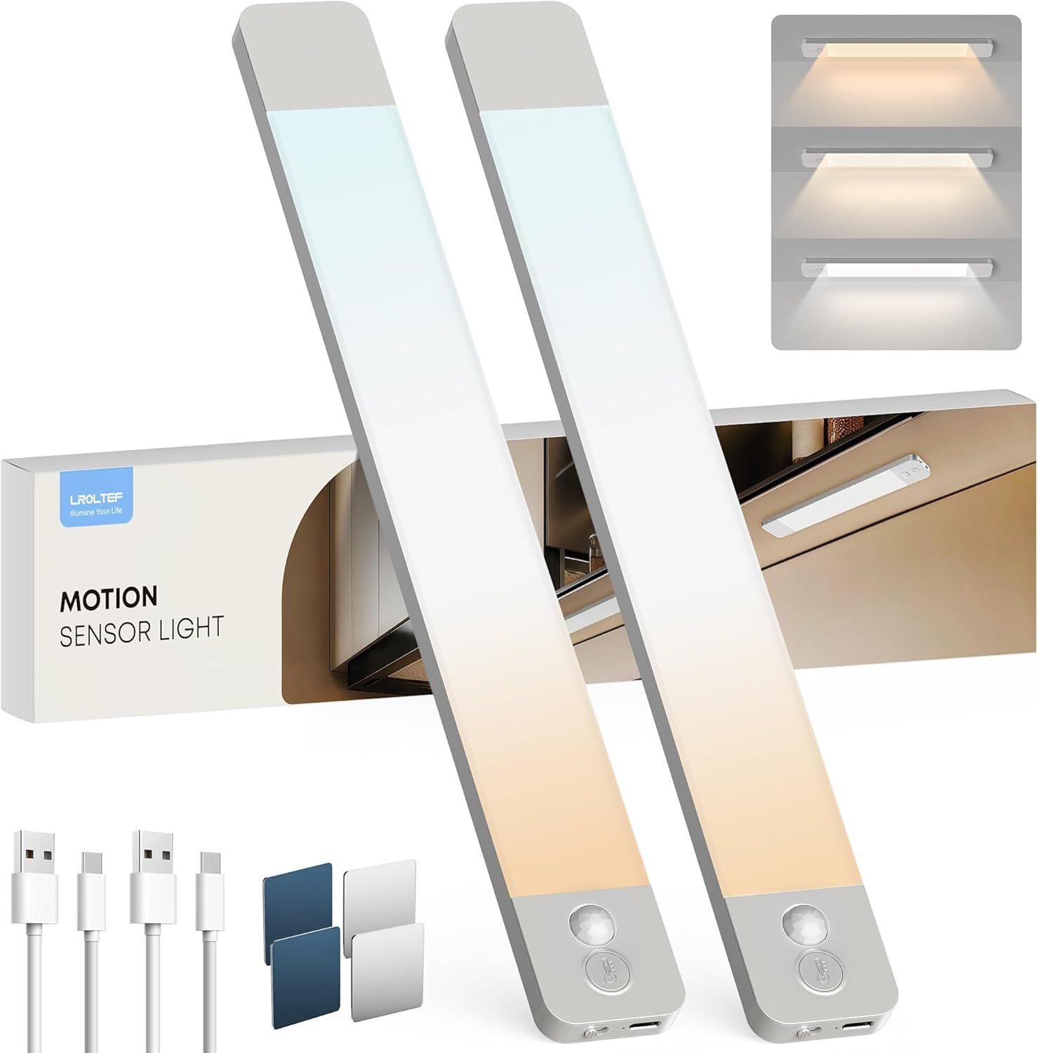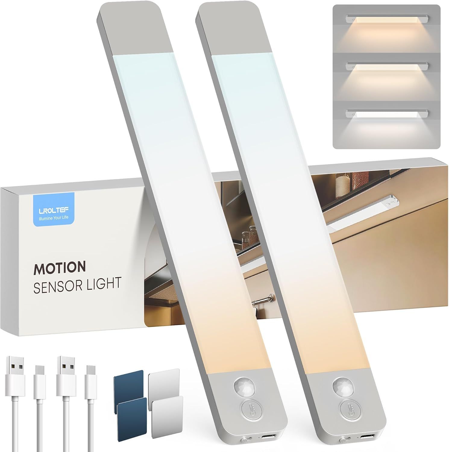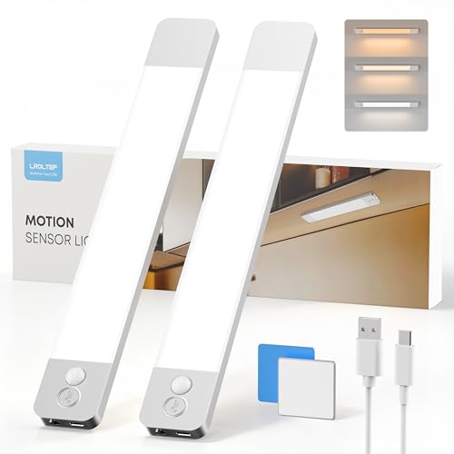 LROLTEF LED Lampe Cuisine Meuble avec Detecteur de Mouvement Intérieure - 50cm 3000mAh 3000K 4000K 6500K 3 Température Dimmable & Rechargeable Lumières para Cuisine, Escalier, Chambre | 2 Piezas