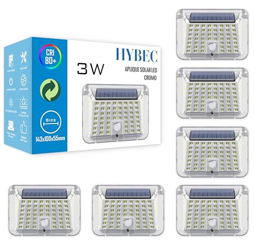 HYBEC - Lampe Solaire Avec Détecteur De Mouvement, Lampe Exterieur Solaire Detecteur De Mouvement, Lumiere Solaire Exterieur Detecteur De Mouvement, Eclairage Solaire Exterieur Avec Detecteur (Pack 6)