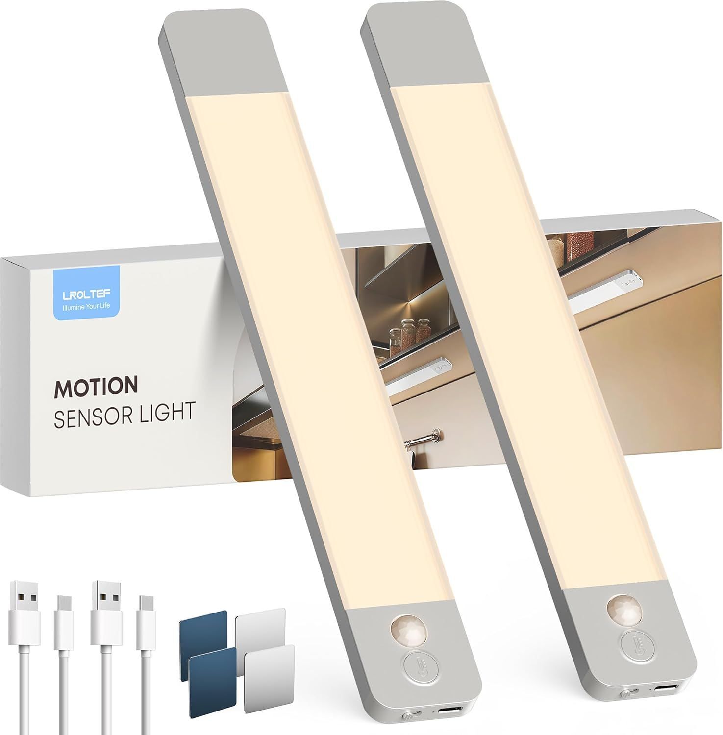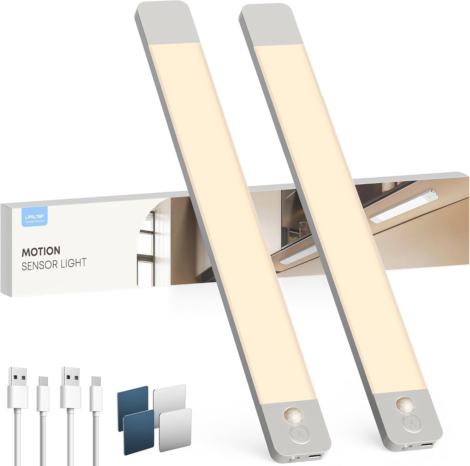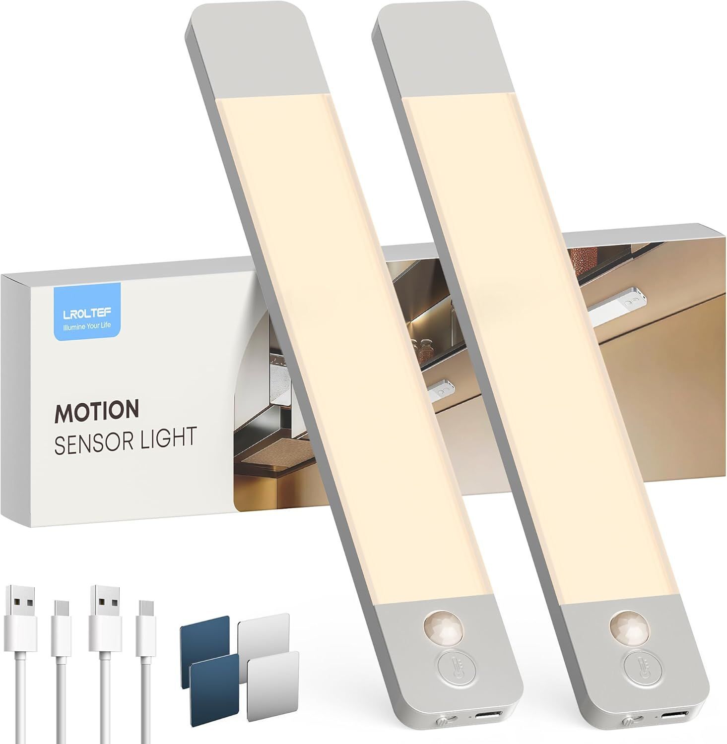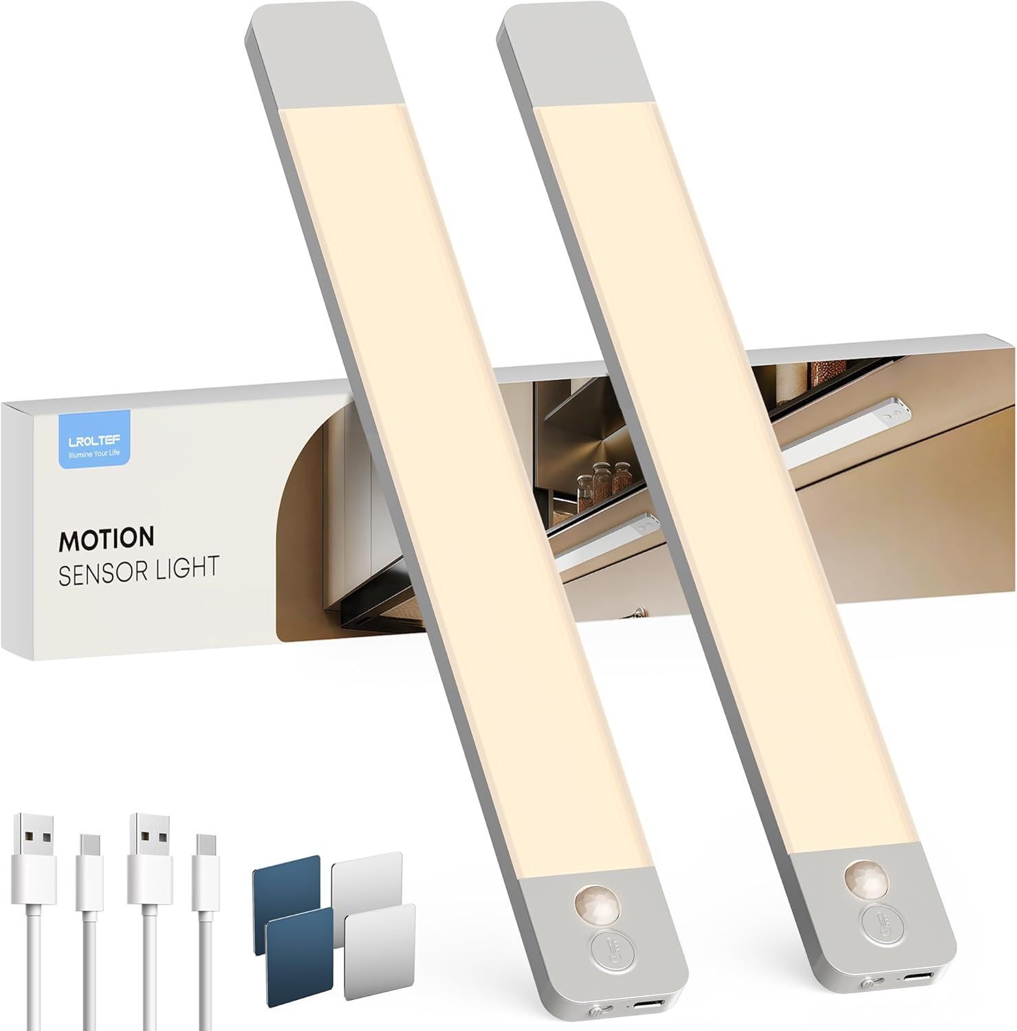 LROLTEF LED Lampe Cuisine Meuble avec Detecteur de Mouvement - 50cm 3000mAh 4000K Dimmable & Rechargeable Lumières para Placard Cuisine, Escalier, Le Couloir, Chambre | 2 Piezas
