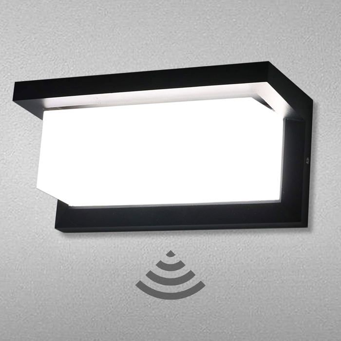 Adviti NEFRYT LED 15W Luminaire Exterieur Lampe de Jardin avec Détecteur de Mouvement 1100lm IP54 4000K (noir)