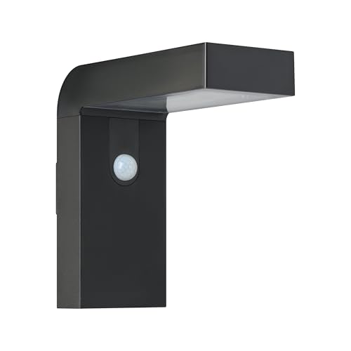 Eglo Applique murale extérieure Barracconi, lampe solaire avec détecteur de mouvement et capteur crépusculaire, éclairage d'extérieur en aluminium noir, IP44