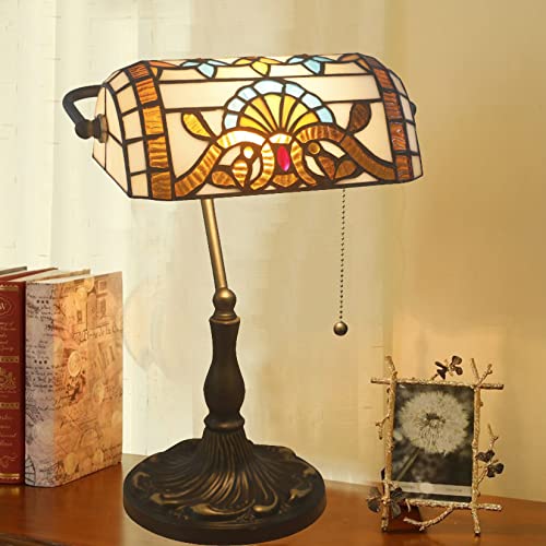 Uziqueif Lampe Banquier Verte, Vintage Lampe Tiffany, Abat Jour Verre, avec Interrupteur à chaîne à Tirer, pour Bureau bibliothèque étude Bureau Chambre,G