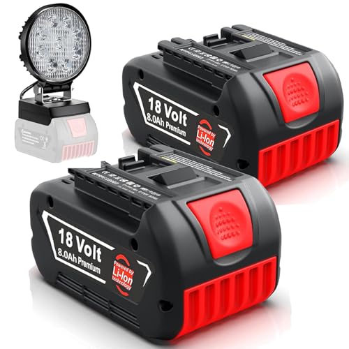 2X Batterie de Rechange pour Bosch 18V 8000mAh+Lampe de Travail Li-ION Batterie d'outils pour Bosch 18V BAT618 BAT618G BAT619 BAT619G BAT610G BAT610 BAT609 BAT609G BAT612 BAT622