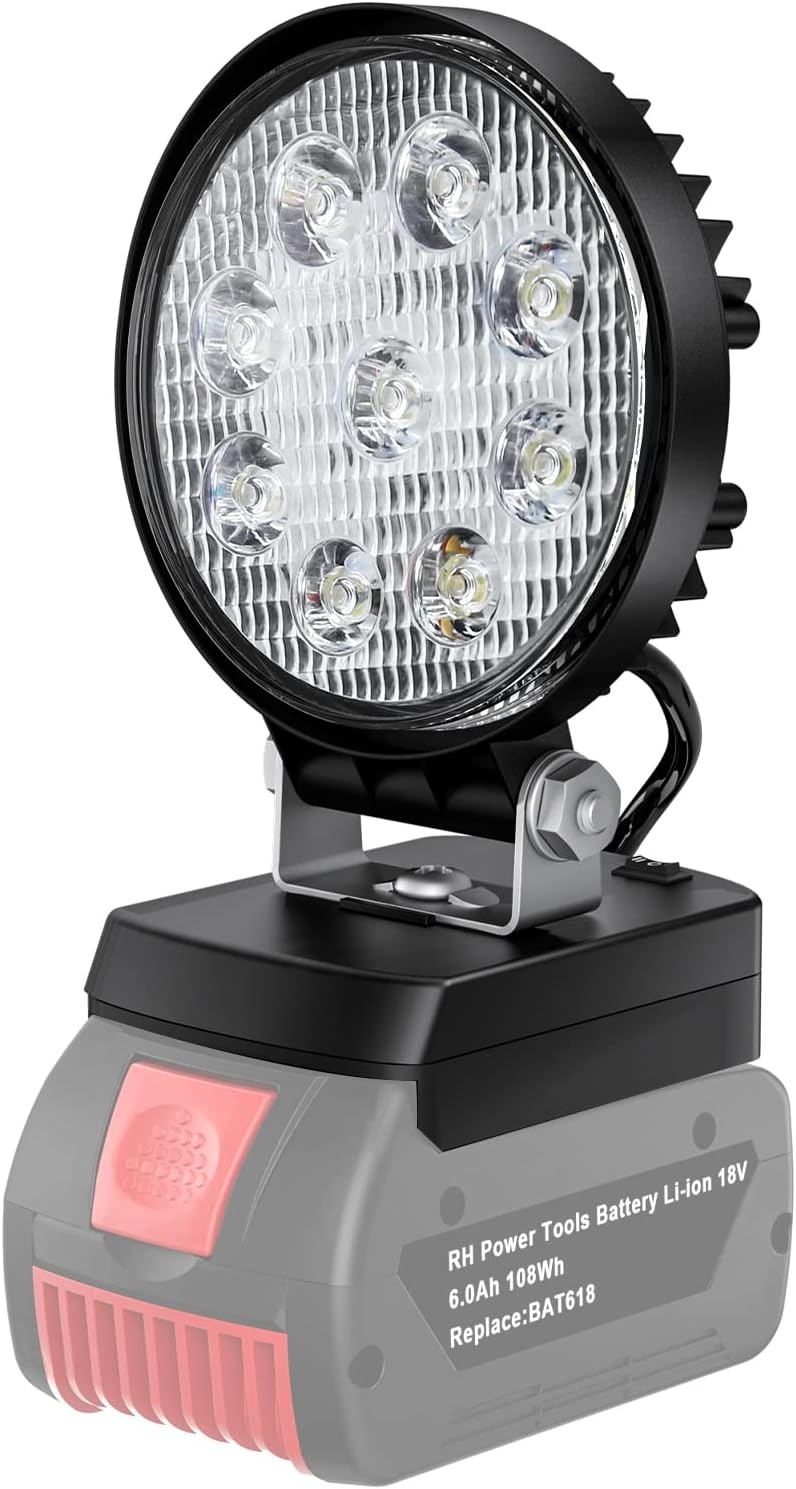 Bonadget Projecteur de chantier LED, lampe pour système Bosch 18 V, projecteur de travail LED portable avec 2 modes de luminosité, mini projecteur pour l'entretien et le camping