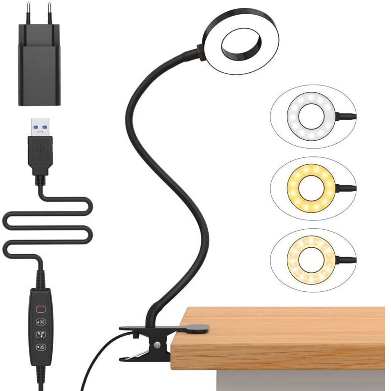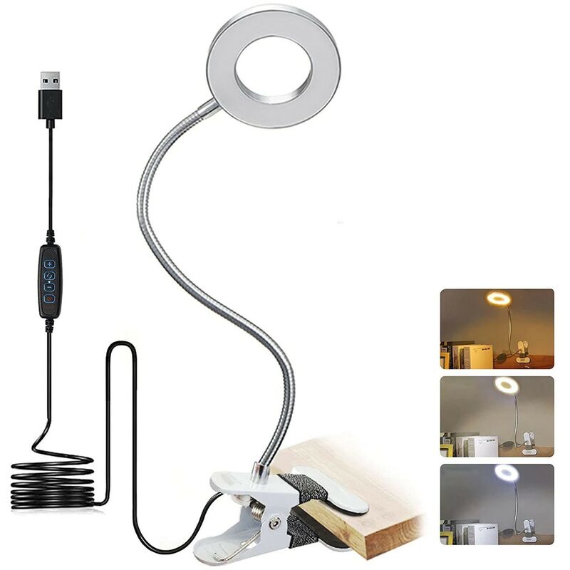 Led Lampe De Bureau à Pince, usb Alimenté Flexible Lampe De Lecture à Pince Pliable Réglable Lumière Douce Protection Des Yeux Avec 3 Modes