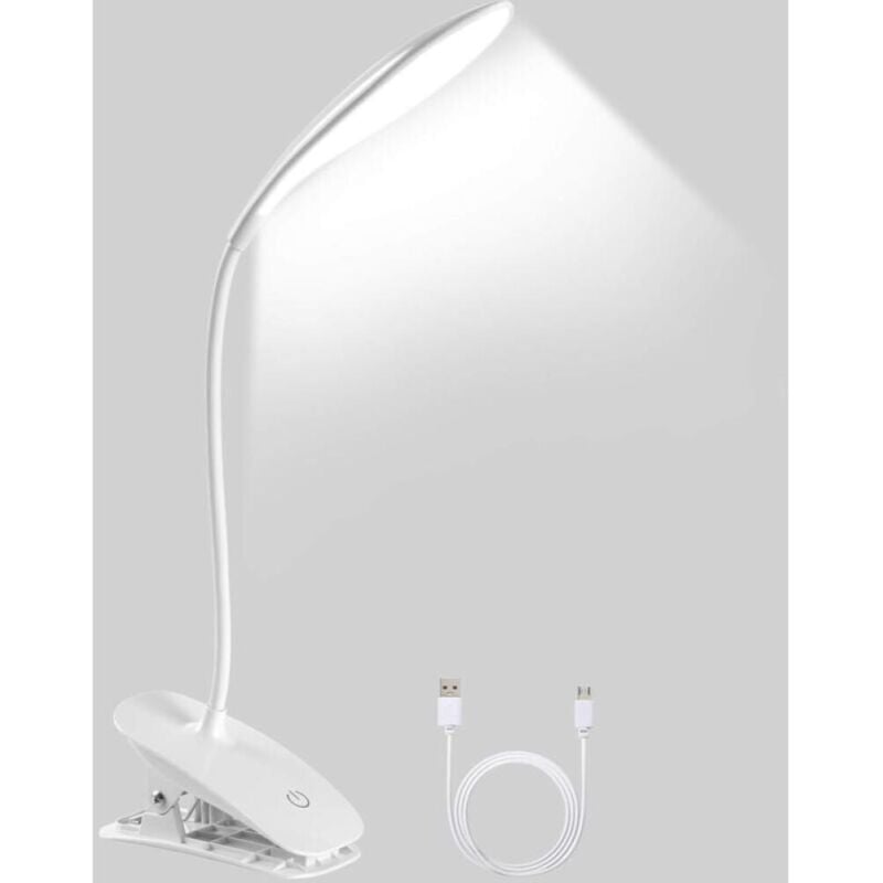 Lampe de Bureau Pince Lampe de Lecture Clipsable Luminosité Réglable Lampe Pince pour Lit Lampe Bureau Led USB pour Étude et Travail, Blanc