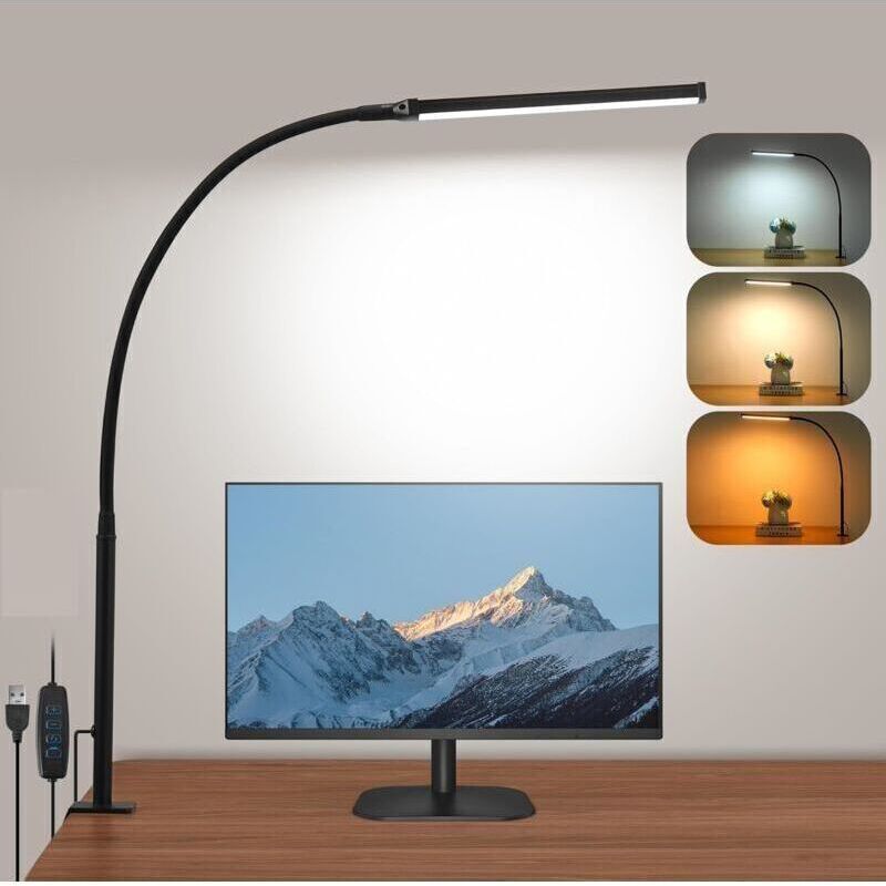 Lampe de Bureau à Pince- 3 Modes/10 Luminosité, usb, 360° (Noir)