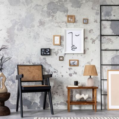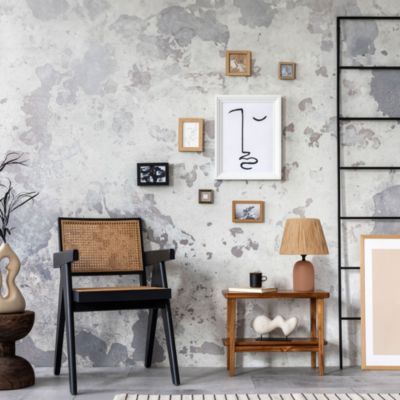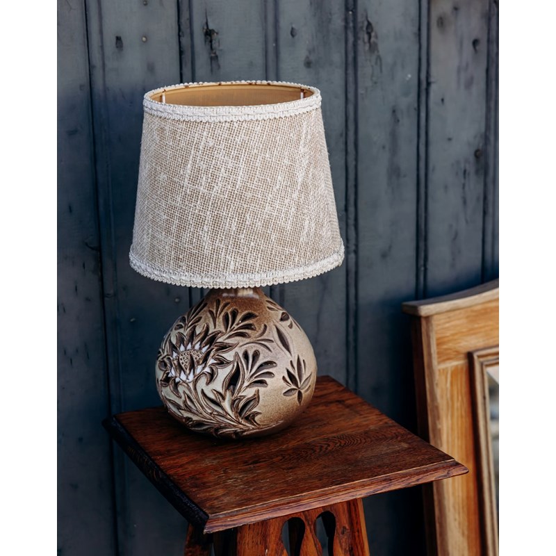 Lampe à poser en céramique fleurs grises Ø.14 x H.29cm E14 40W Lussiol, Gisèle