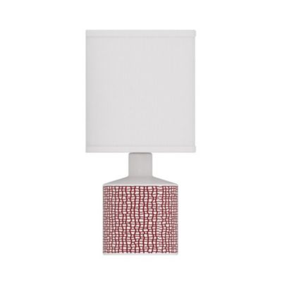 Lampe à poser en céramique rayée blanc, rouge framboise et fibres tressées H.30 cm E27 40 W Jumell Quoki