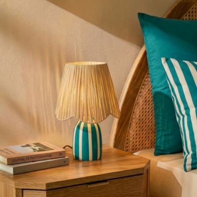 Lampe à poser en céramique rayée bleu, blanc et fibres tressées H.30 cm E27 40 W Jumell Quoki